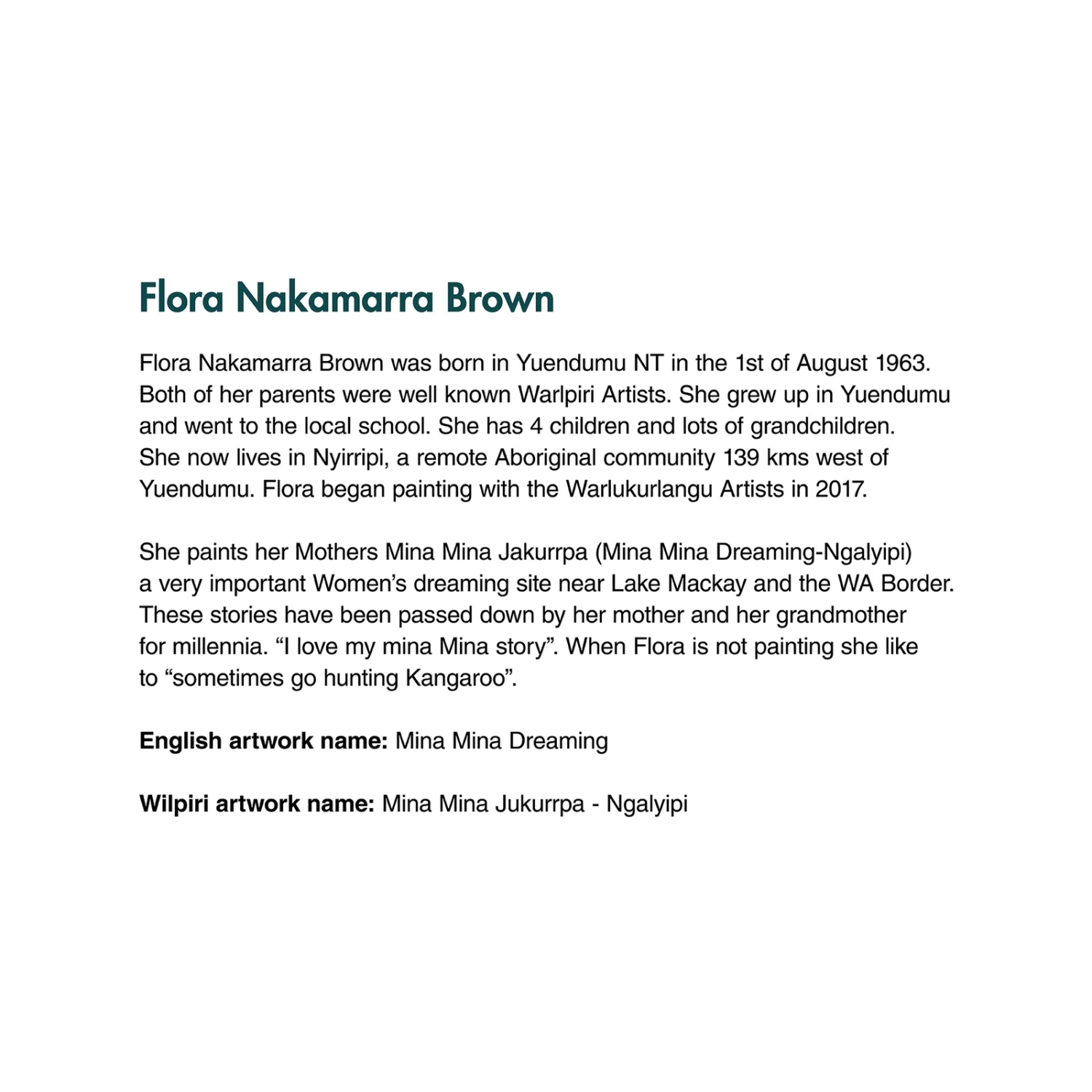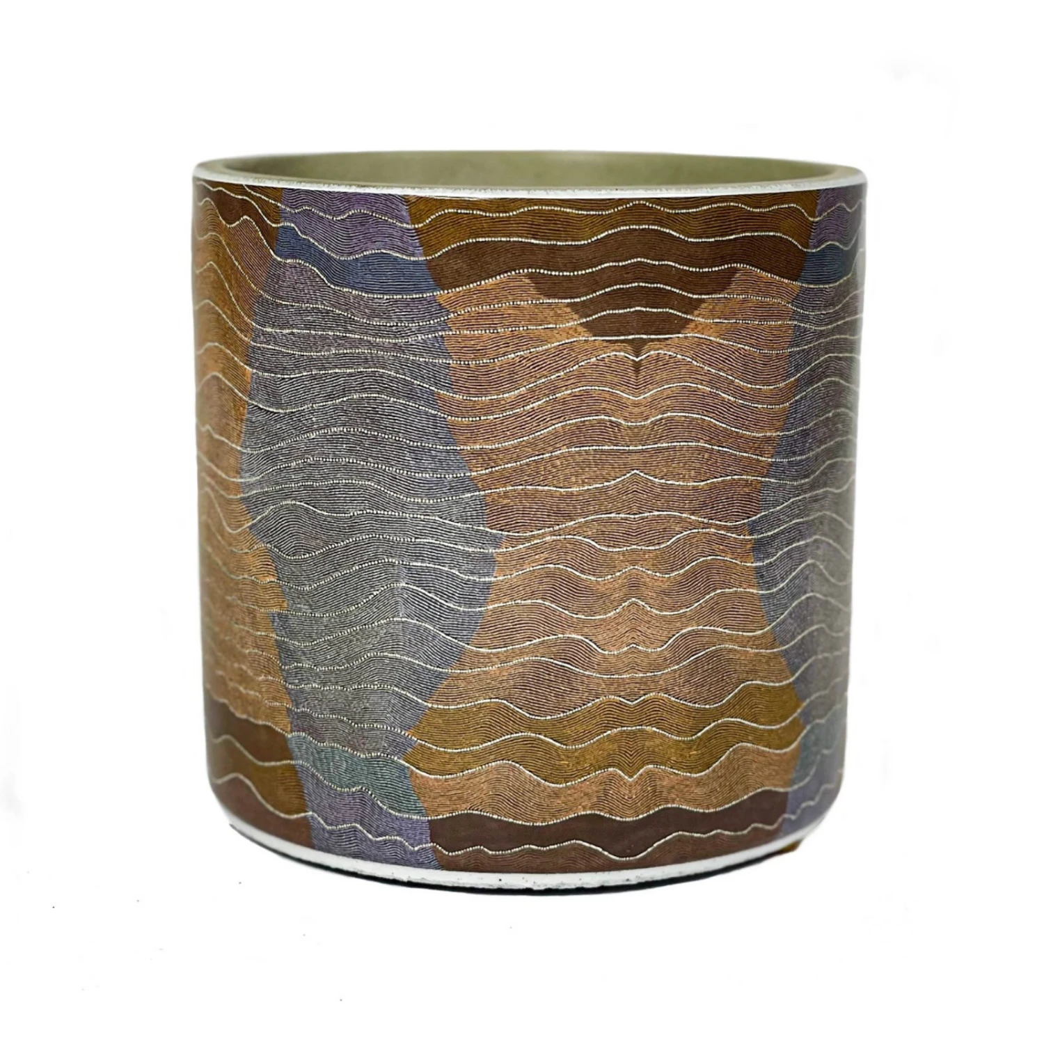 Mina Mina Dreaming is an original artwork by Flora Nakamarra Brown replicated onto our EDEN Indoor Cement Planters. Ideal for both indoor and patio settings, Our planters not only tell a story about the Indigenous artists connection to their country but also make a unique addition to any home.