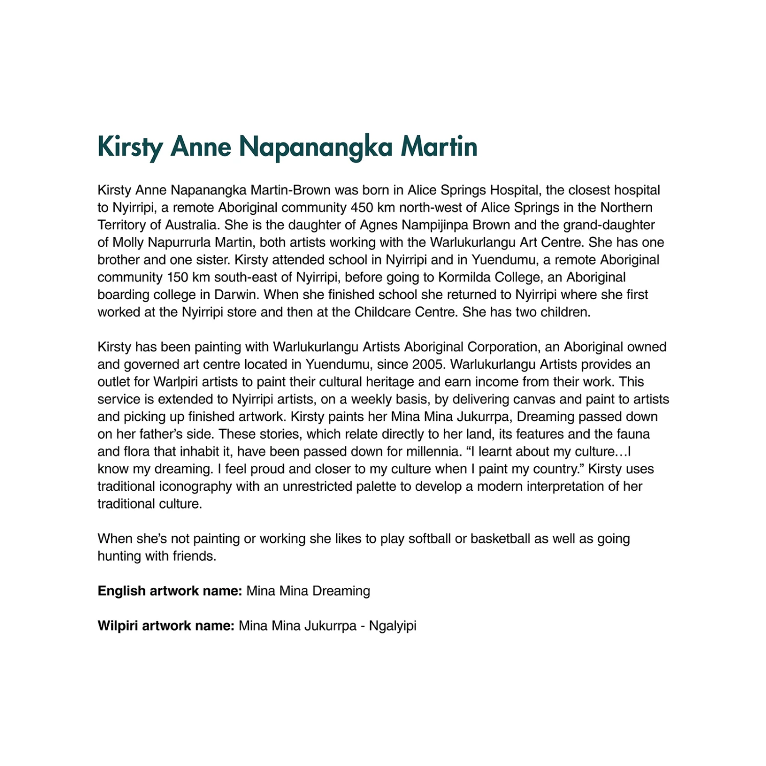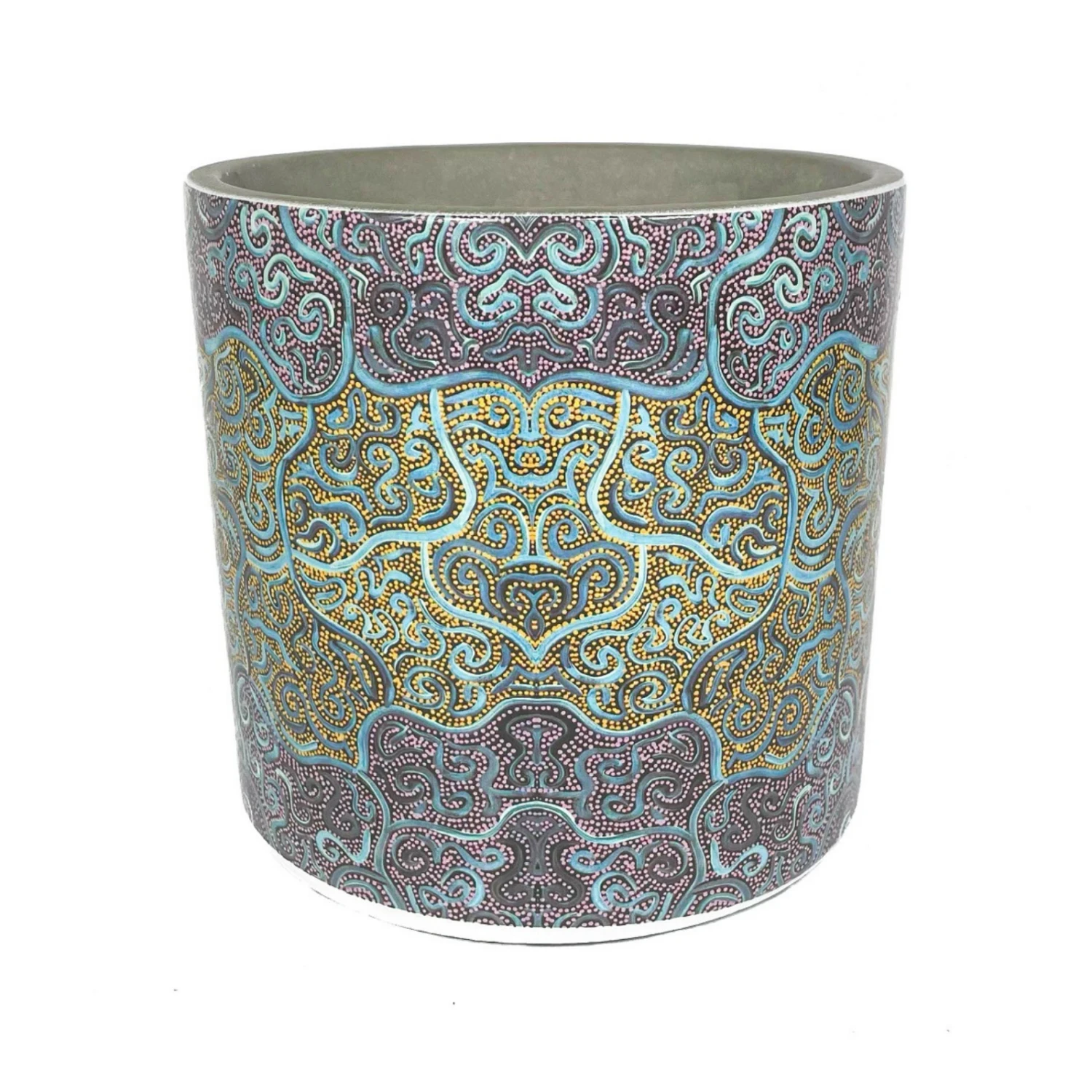 Mina Mina Dreaming 1 is an original artwork by Kirsty Anne Napanangka Martin replicated onto our Eden indoor cement planters. Ideal for both indoor and patio settings, Our planters not only tell a story about the Indigenous artists connection to their country but also make a unique addition to any home.